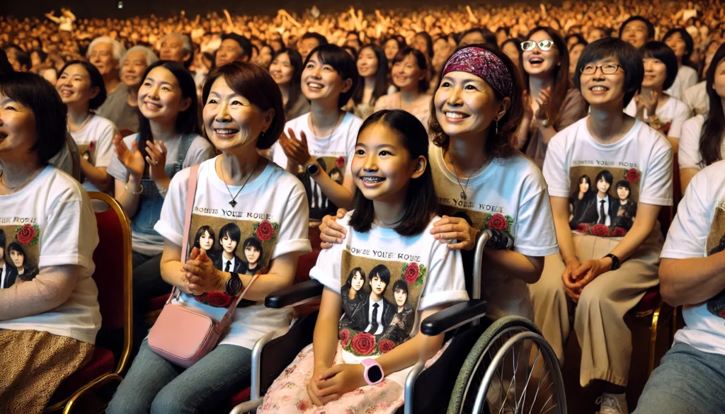 特に最近目立つのが、お母さんが娘さんを連れてきたり、逆におばあちゃんとお孫さんが一緒に参加していたりする「ファミリー参加」の多さです。親子3世代でライブに参加し、全員が同じツアーTシャツを着て楽しんでいる光景も珍しくありません。これは、ミッチーのエンターテイメントが特定の世代だけに向けたものではなく、普遍的な「愛と笑顔」をテーマにしているからこそ起きる現象でしょう。