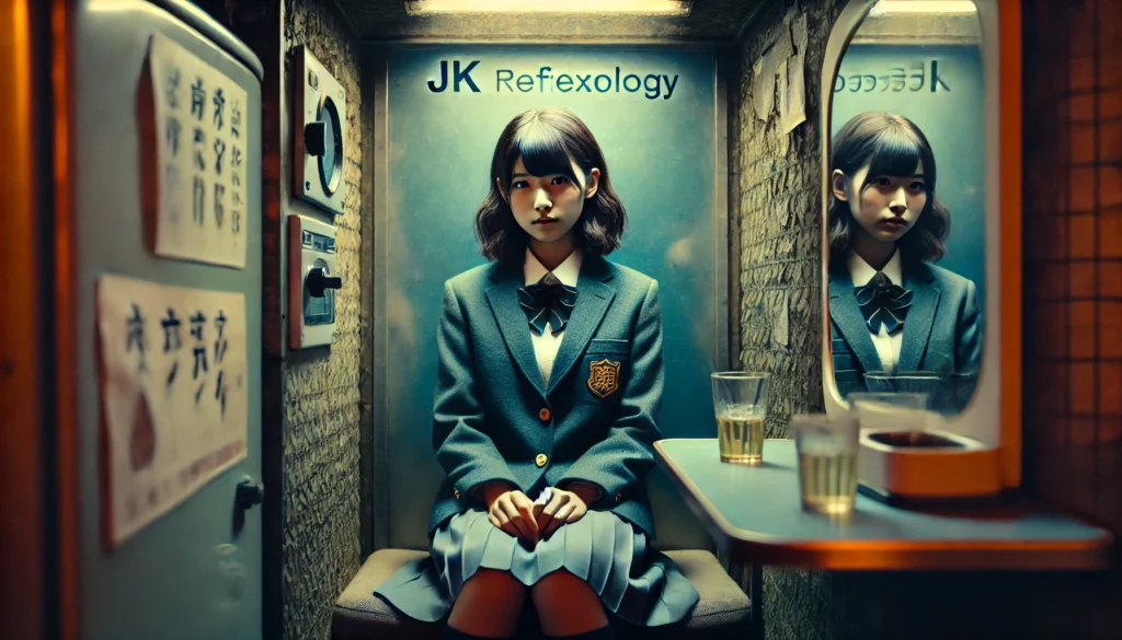 家族でこの映画を観た際、多くの人が「気まずい空気になった」と口を揃えるのが、亜紀が働くJKリフレ店での描写です。薄暗い個室、マジックミラー、制服姿の亜紀、そして見えない客。直接的な性行為の描写はないものの、亜紀が自分の胸を見せたり、客の性的な視線を受け止めたりするシーンは、親子で観るには確かに刺激が強いかもしれません。
