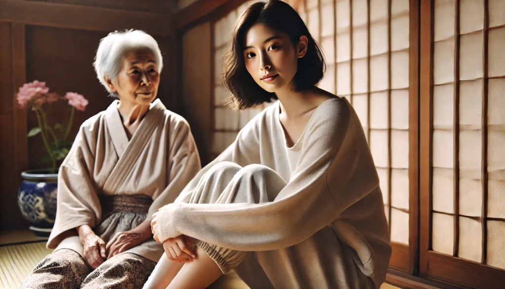 亜紀というキャラクターの特筆すべき点は、その多面性にあります。家の中ではノーメイクに近い顔で、ジャージや緩い部屋着を身にまとい、樹木希林さん演じる初枝(おばあちゃん)の足にまとわりつくように甘える姿を見せます。まるで本当の孫のような距離感で接する彼女の姿は、観る者に「血の繋がりとは何か」を問いかけるような温かさと、どこか危うい依存性を感じさせます。彼女は実家での生活に息苦しさを感じ、物質的には恵まれているものの精神的に満たされない環境から逃げ出し、貧しくても心が通い合う(ように見える)この擬似家族を選んだのです。