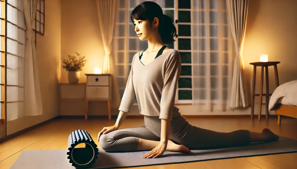 日中の姿勢への意識に加えて、一日の終わりのケアも徹底しています。彼女にとって、寝る前のストレッチは欠かせない日課の一つです。なんと毎晩30分ほど時間をかけ、ストレッチポールを使って身体の歪みをリセットしてから眠りにつくそうです。30分もストレッチに時間を割くというのは、並大抵の努力ではありません。