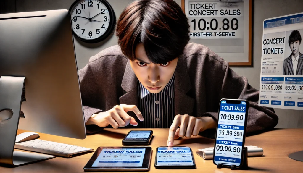 一般発売は、多くの場合「抽選」ではなく「先着順」で行われます。よーいドンでアクセスし、購入ボタンを押せた人が勝ちという、完全なる早い者勝ちの世界です。数秒、いやコンマ数秒で完売することも珍しくありません。この激戦を勝ち抜くためには、事前の準備とテクニックが不可欠です。
