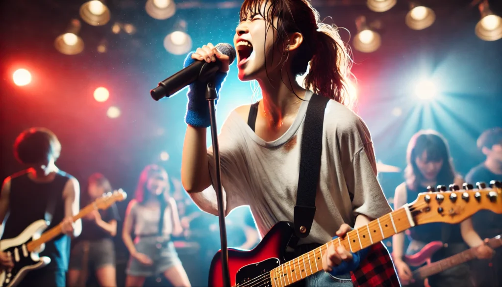 彼女は劇中でギターボーカルを務めていますが、歌唱力という技術的な面だけで言えば、プロの歌手には敵わないかもしれません。しかし、声を枯らし、汗を流して叫ぶように歌うその姿には、技術を超えた「魂」が宿っていました。