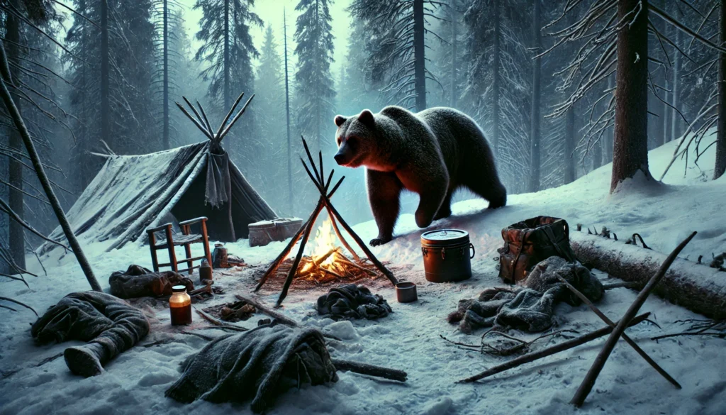 実は史実の三毛別羆事件でも、この「獲物への執着」が被害を致命的に拡大させる最大の原因となりました。ヒグマは最初の襲撃で犠牲となった女性の遺体を自らの食料として森に持ち去りましたが、その後、遺体を取り返して通夜を営んでいた人々の家に、再び遺体(自分の獲物)を奪い返すために乱入してきたのです。大勢の人間が集まり、火を焚いている場所であっても、ヒグマの執着心は人間の常識をはるかに超えていました。この習性を知らず、一度奪われたものを取り戻したり、その場に留まったりする行動が、いかに取り返しのつかない惨劇を招くか。(出典:北海道庁『ヒグマについて』)の解説などでも、ヒグマに遭遇した際は持ち物を置いて静かに立ち去り、決して取りに戻ってはいけないと強く警告されています。